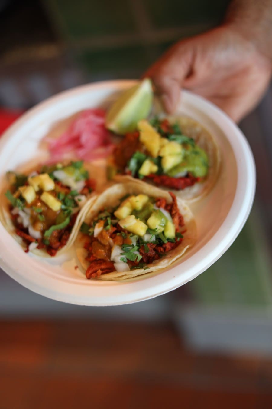 "I got the Al pastor and steak tacos and they were both delicious. A bit of kick helped to bring in the rest of the flavors. The pineapple was sweet and perfect with the pork. Would definitely get again and very affordable."
