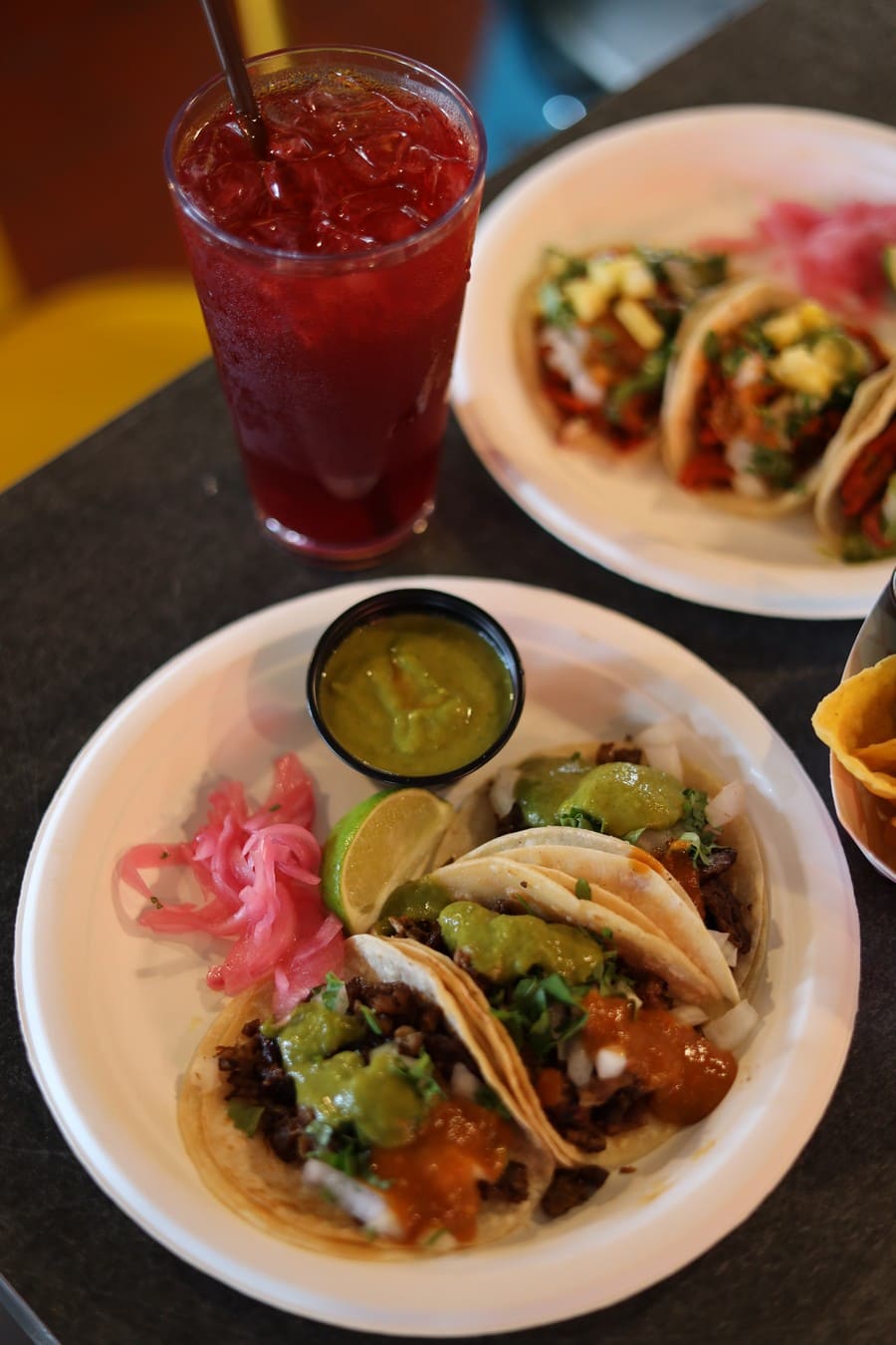 "Great food, recommend the Asada tacos! The chips and guac was a good appetizer. Make sure to get the corn cup with takis, very delicious!"